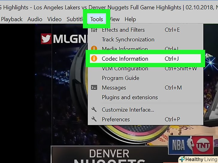 Перегляньте інформацію про кодек.- У Windows Натисніть Інструменти gt; Інформація про кодек .