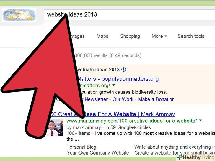 - Пошукайте в Інтернеті тенденції та ідеї для сайтів; не забудьте вказати поточний рік, щоб не витрачати час на те, що було популярно в 2006 році. Наприклад, пошук в Гугл по "ідеї для сайту 2014" повертає більше 37 мільйонів результатів. Тепер справа залишилася за малим-пройтися по видачі і вибрати ідеї, які ляжуть в основу вашого сайту.