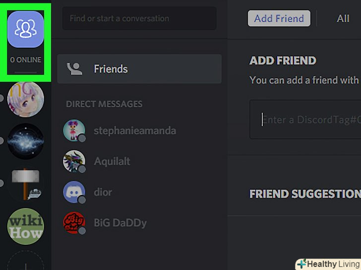 Перейдіть на сторінку: https://www.discordapp.com. на сайт Discord можна увійти через будь-який браузер, будь то Chrome або Safari.- Якщо ви не ввійшли до свого облікового запису автоматично, натисніть «Вхід " у верхньому правому куті сторінки, введіть своє ім'я користувача та пароль, а потім натисніть «Увійти».