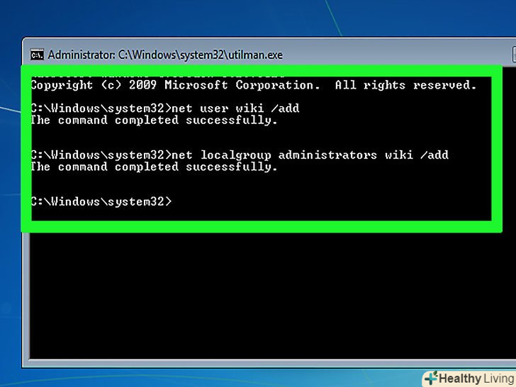 Створіть новий обліковий запис адміністратора. для цього:- Введіть net user ім'я / add , де замість «ім'я» введіть потрібне ім'я користувача;