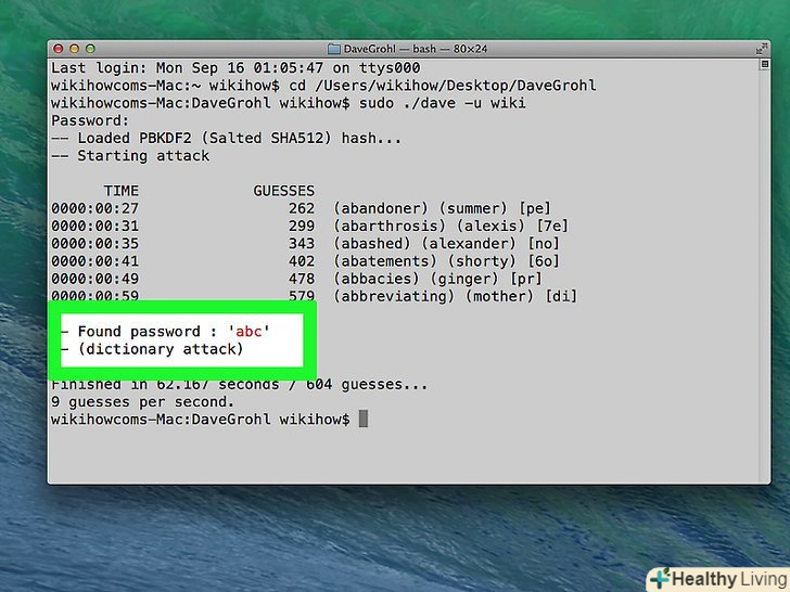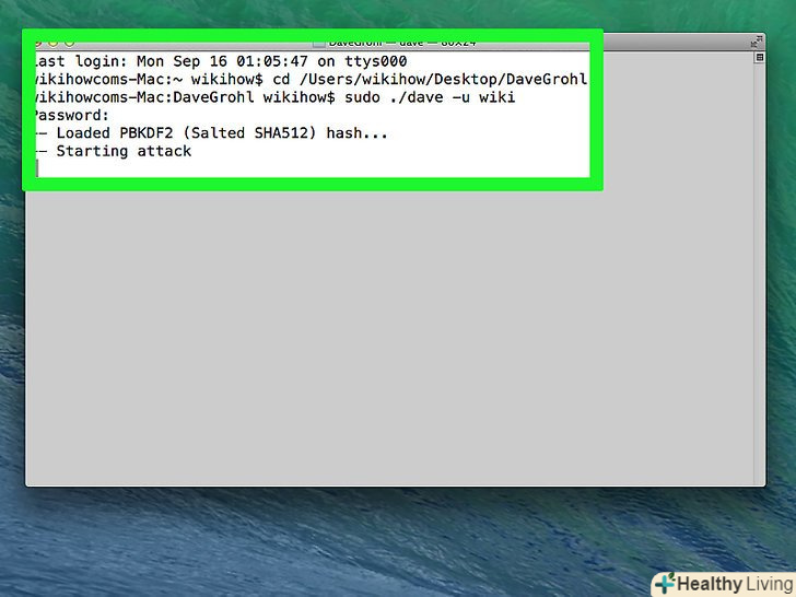 Приступите до злому пароля. виконайте наступні дії:- Введіть sudo ./ dave-u ім'я , де замість «ім'я» введіть ім'я користувача, обліковий запис якого ви хочете зламати;