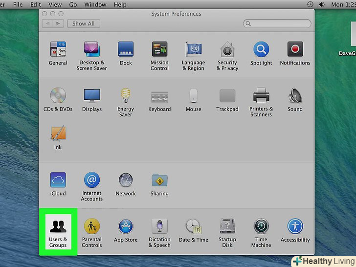 НатиснітьКористувачі та групи . ця опція знаходиться у вікні «Системні налаштування». Відкриється меню " користувачі і групи».