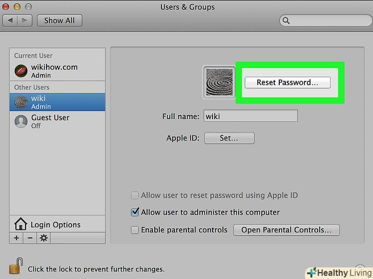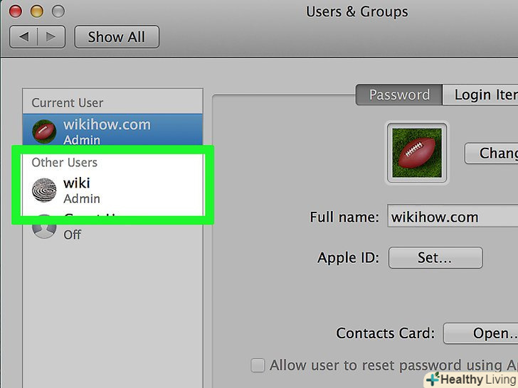 Виберіть обліковий запис. на лівій панелі натисніть на ім'я користувача, пароль якого ви хочете змінити.