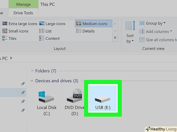 Знайдіть інсталяційний компакт-диск або USB-накопичувач. у цьому методі вам знадобиться інсталяційний диск Windows 10; якщо його Немає, Створіть інсталяційний USB-накопичувач:- Підключіть до комп'ютера USB-накопичувач ємністю 8 ГБ (або більше);