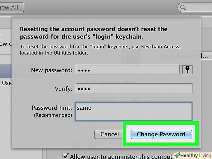 Клацніть поЗмінити пароль . ця опція знаходиться в нижній частині спливаючого вікна. Пароль буде змінено.