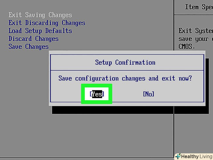 Збережіть зміни і вийдіть з BIOS. Натисніть клавішу «Save and Exit» (Зберегти і вийти), яка вказана в списку клавіш, а потім підтвердіть свої дії, натиснувши відповідну клавішу. Комп'ютер перезавантажиться, а на екрані відобразиться меню установки.
