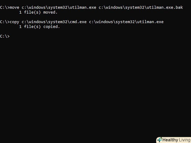- Введіть copy c:\windows\system32\cmd.exe c:\windows\system32\utilman.exe