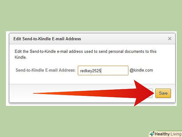 Введіть нову адресу. переконайтеся, що заповнюється іменна частина. Частина "@Kindle.com " вже закодована в системі для використання при кожній доставці Kindle Електронної Пошти.