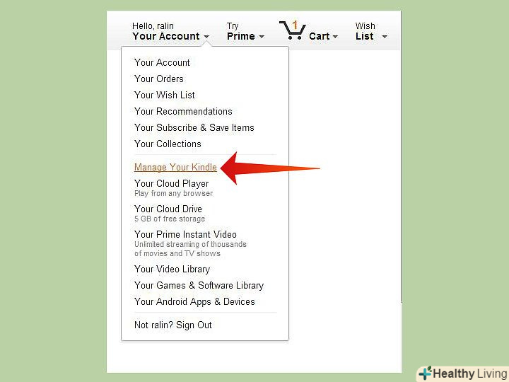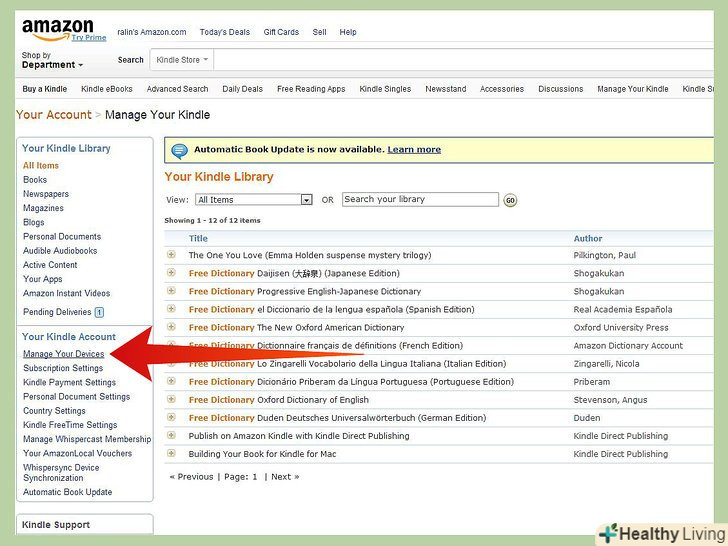 Клікніть посилання "Manage Your Kindle".