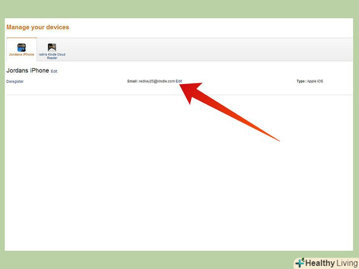 Потім клікніть посилання "Edit" поруч з Kindle для зміни або додавання адреси.