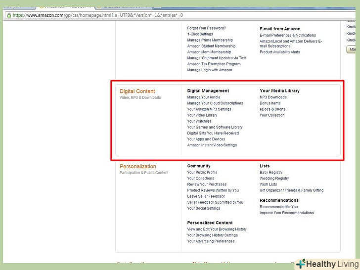 Клацніть "Your Digital Items"у верхній частині будь-якого екрану сайту Amazon.