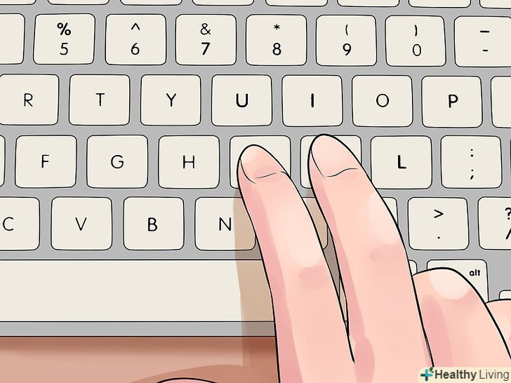 Покладіть правий вказівний палець на клавішу J, на якій знаходиться лінія для сліпих.