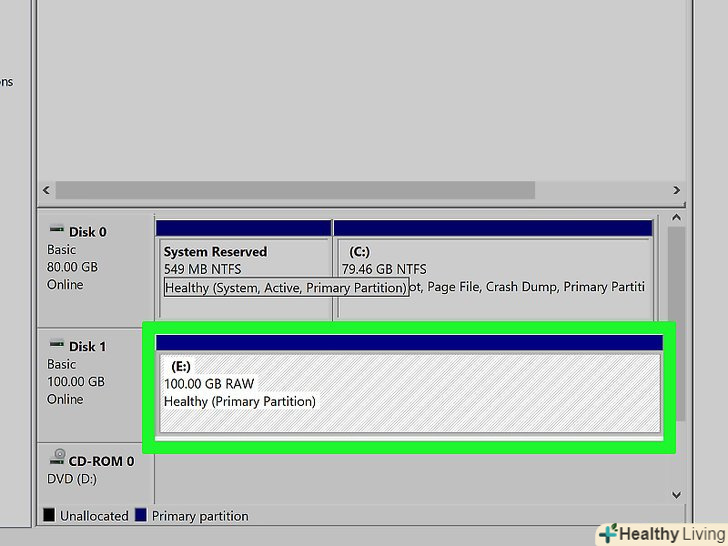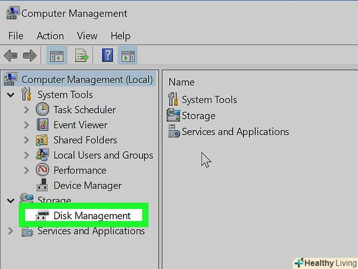 Клацніть поУправління дисками в розділі "Запам'ятовуючі пристрої". ця опція знаходиться на лівій панелі. Можливо, спочатку вам доведеться натиснути на значок у вигляді стрілки у "Запам'ятовуючі пристрої«, щоб відобразити опцію»Управління дисками". Відкриється список жорстких дисків, підключених до комп'ютера.