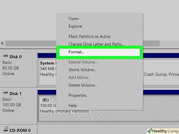 Клацніть правою кнопкою миші на диску, який ви хочете відформатувати. можна вибрати будь-який диск, на якому немає Windows.