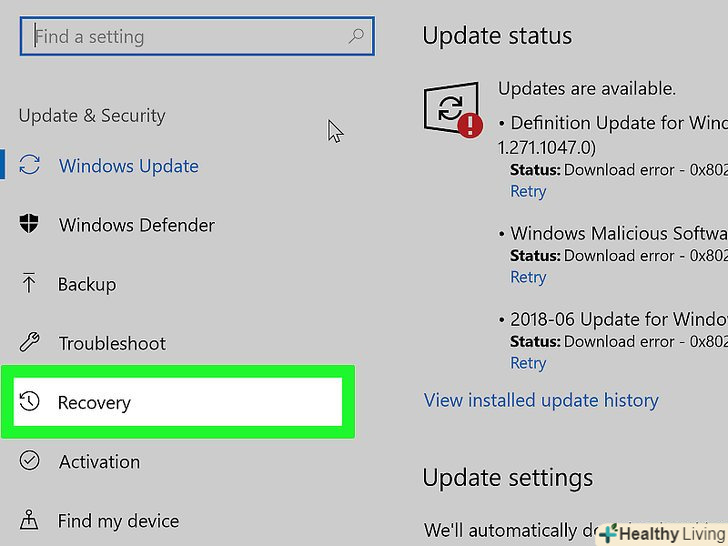 НатиснітьВідновлення . ви знайдете цю опцію на лівій панелі.