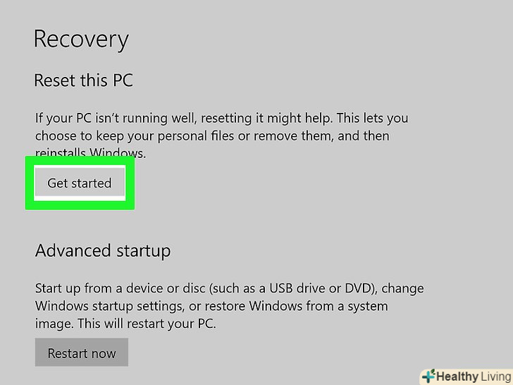 Клацніть поПочати у розділі «повернути комп'ютер у початковий стан».
