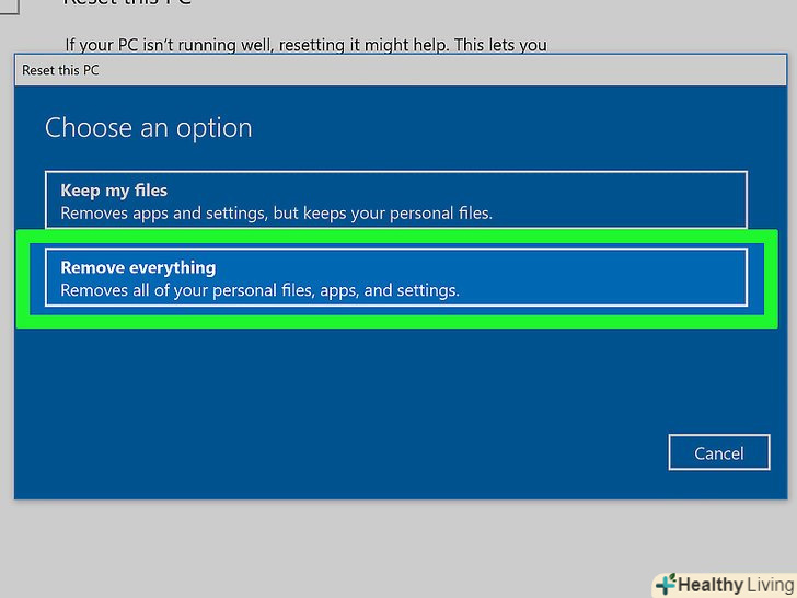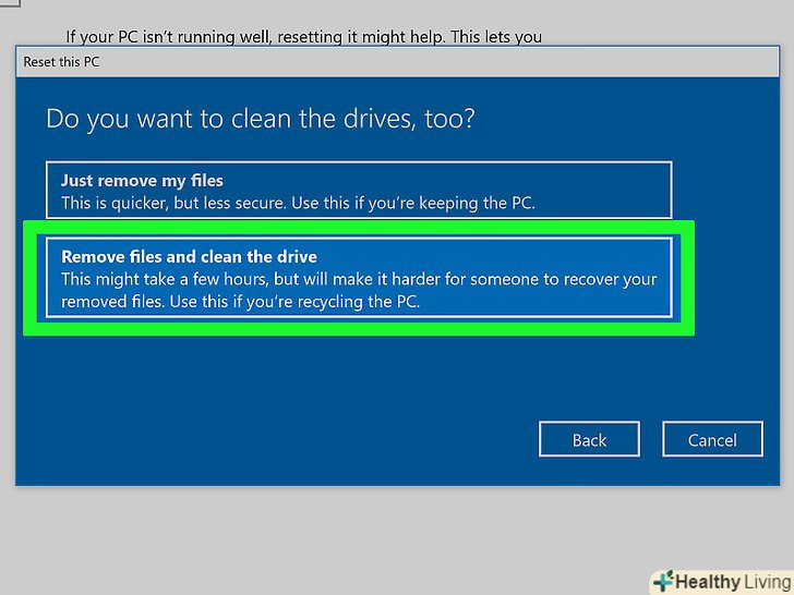 Виберіть опцію для очищення диска.- Якщо ви збираєтеся продати або подарувати жорсткий диск, виберіть опцію «Видалити файли і очистити диск», щоб сторонні люди не отримали доступ до ваших файлів.