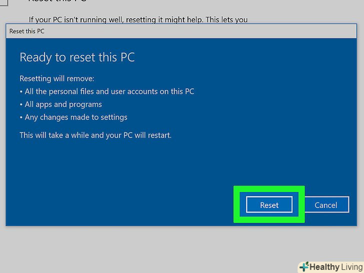 НатиснітьСкинути . запуститься процес скидання. Коли він завершиться, дотримуйтесь інструкцій на екрані, щоб заново налаштувати Windows.