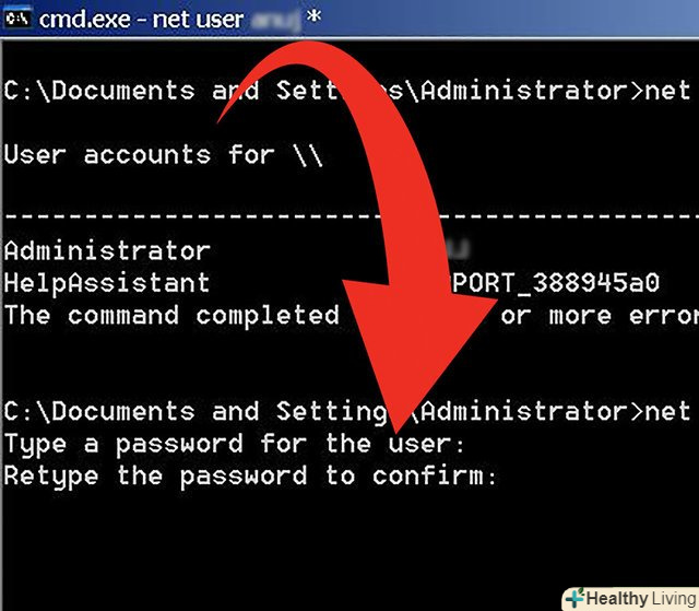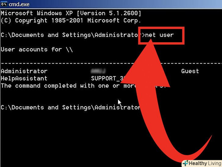 Якщо ви знаєте, як змінити пароль за допомогою CMD (командний рядок), то зробіть це. якщо ні, то введіть net User.- Після цього з'являться всі акаунти на цьому комп'ютері. Виберіть, який ви хочете зламати.