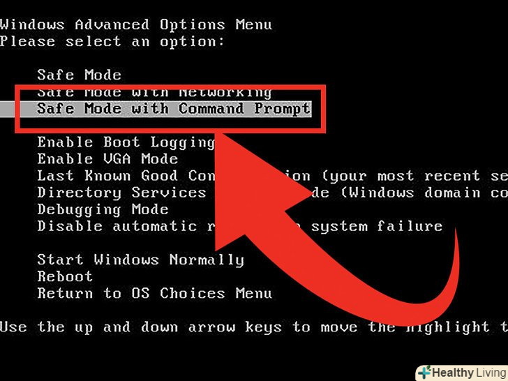 Використовуйте клавіші вгору / вниз, щоб перейти в "Safe Mode with Command Prompt" (Безпечний режим з підтримкою командного рядка) і натисніть клавішу Еnter.(після цього екран стане темним і покаже купу кодів. Не бійтеся, це буде тривати тільки деякий час. Просто переконайтеся, що ніхто більше не входить, коли екран в такому стані).- Потім буде перехід до екрану аккаунта/входу.