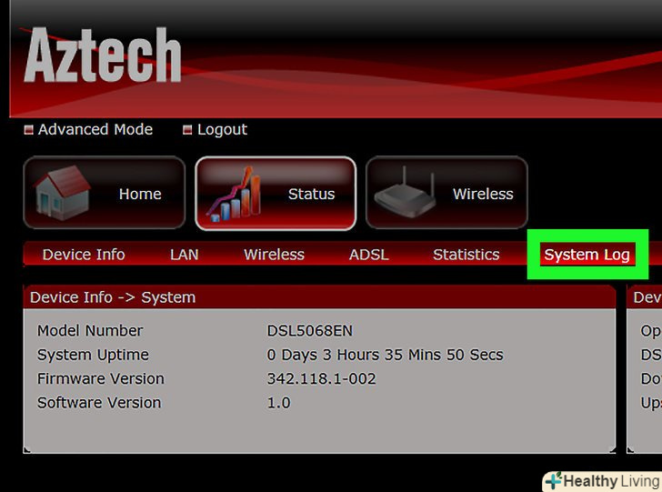 НатиснітьSystem Log (Системний журнал) або Administration-Event Log (журнал подій). швидше за все, ви знайдете цю кнопку на панелі навігації. На новій сторінці відкриється системний журнал маршрутизатора.