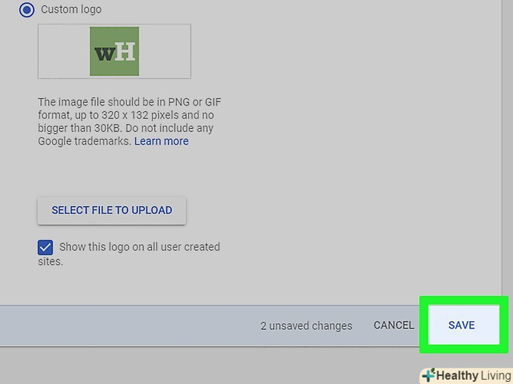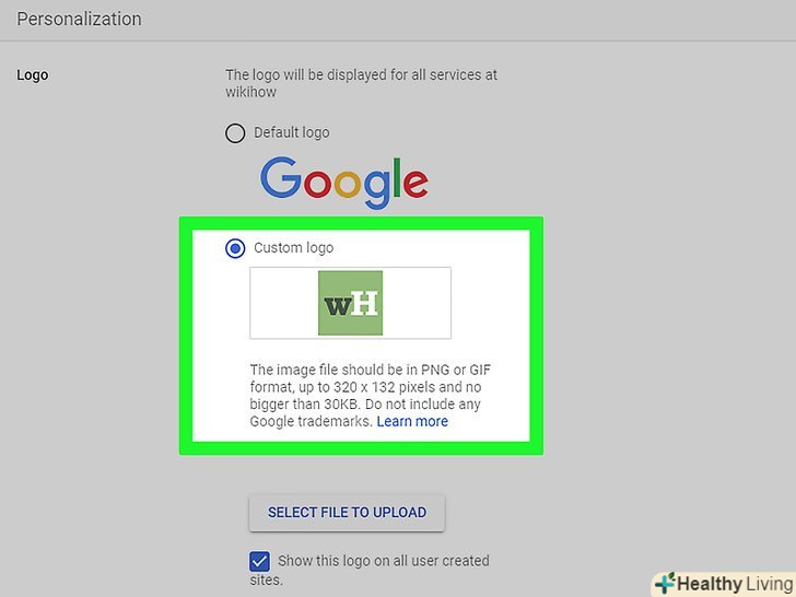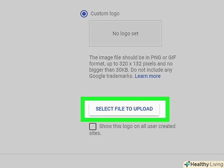 Встановіть прапорець біляСпеціальний логотип . ви знайдете цю опцію під поточним логотипом.