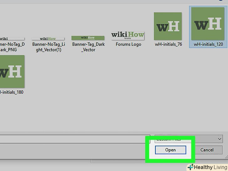 Виберіть логотип і натиснітьВідкрити . коли ім'я файлу відобразиться на сторінці, логотип готовий до завантаження.