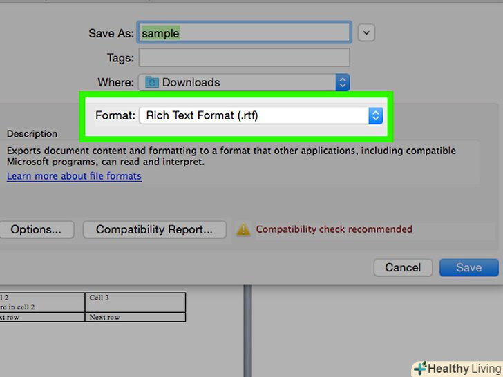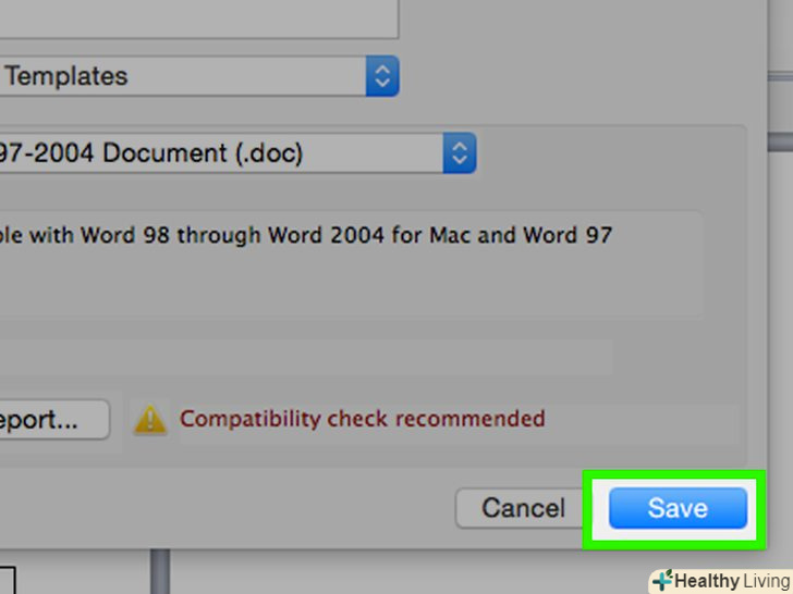 НатиснітьЗберегти.файл RTF буде перетворено в документ Microsoft Word.- Якщо з'явиться попередження про зміну формату документа, натисніть "ОК".