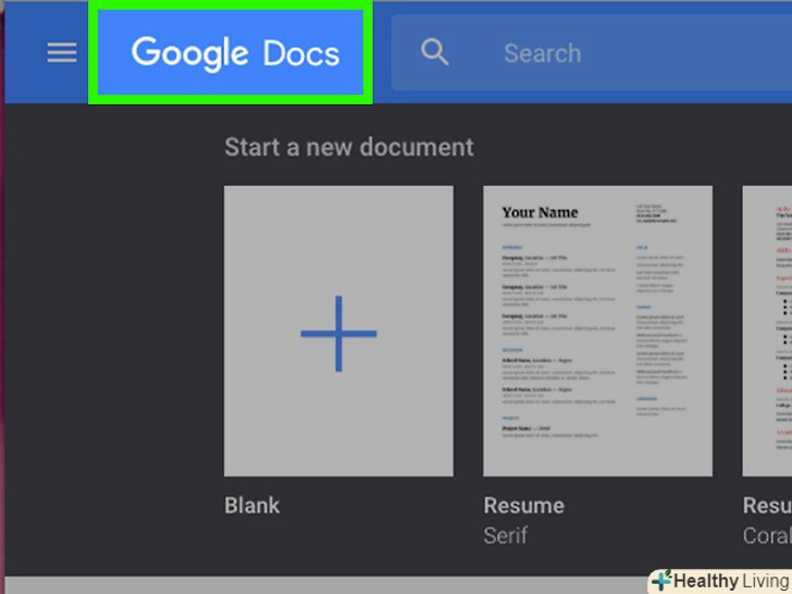 Перейдіть на сторінкуHttps://docs.google.com в браузері.відкриється сервіс Google Документи.- Якщо ви ще не ввійшли, увійдіть або створіть безкоштовний обліковий запис Google.
