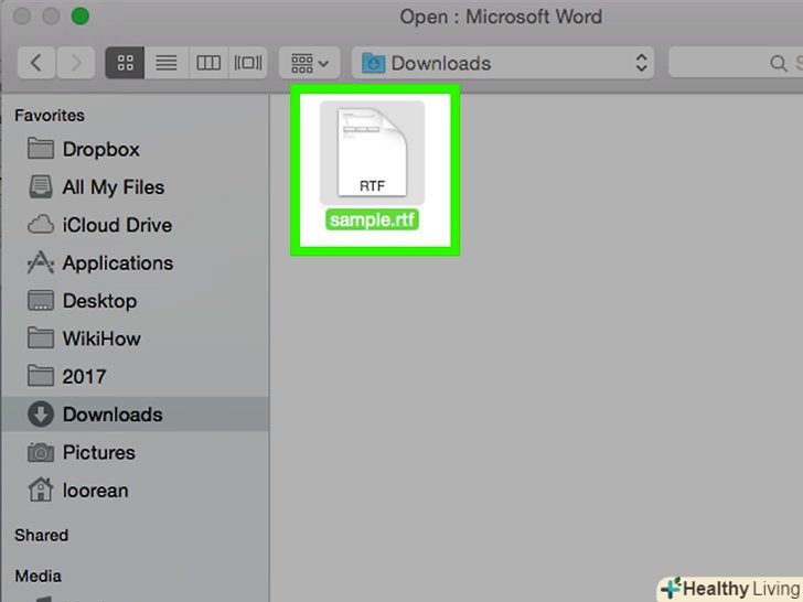 НатиснітьВідкрити.файл rtf відкриється в Microsoft Word.
