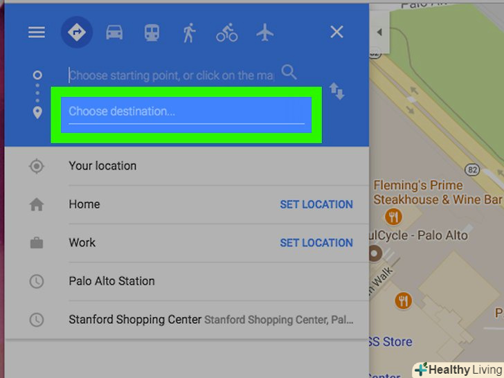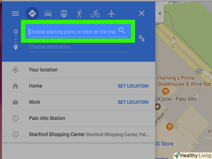 Клацніть по «Як дістатися". це синій значок з вигнутою стрілкою. Він розташований праворуч від рядка пошуку у верхній лівій частині вікна. Відкриється вікно.