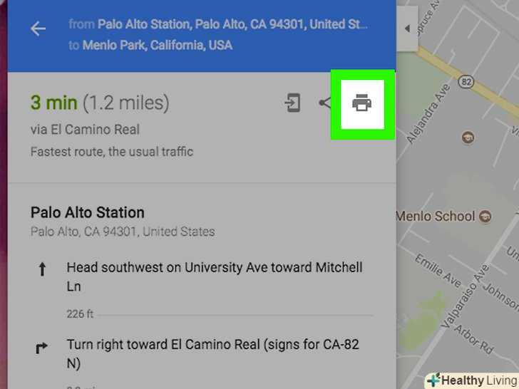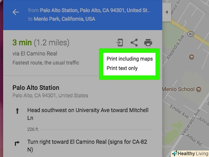 Натисніть «Друк». цей значок розташований праворуч над обраним маршрутом. Відкриється вікно з двома опціями.