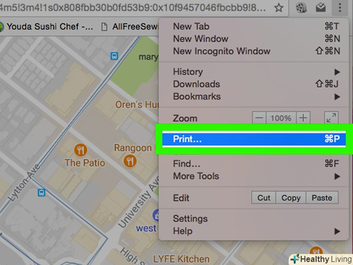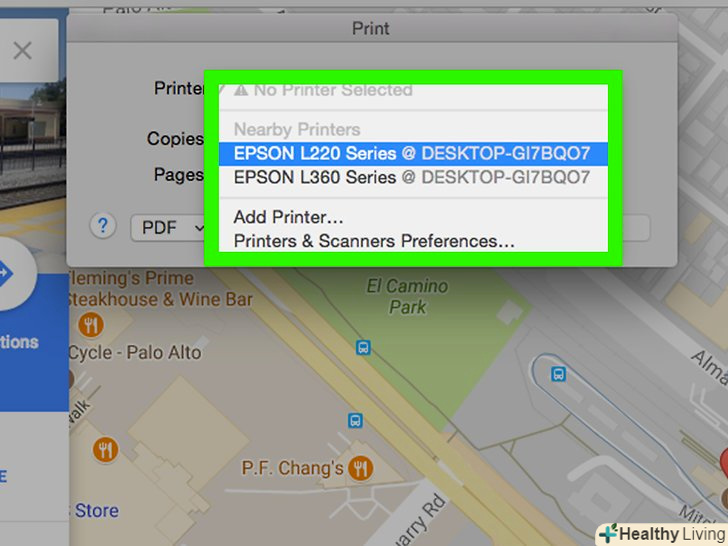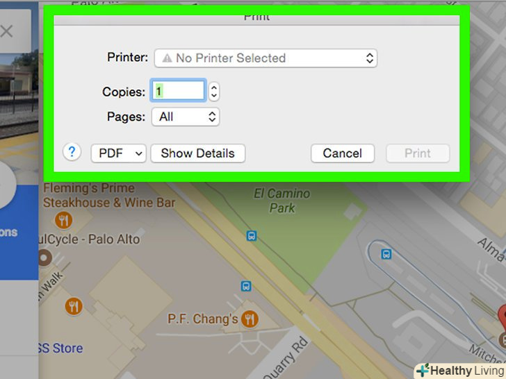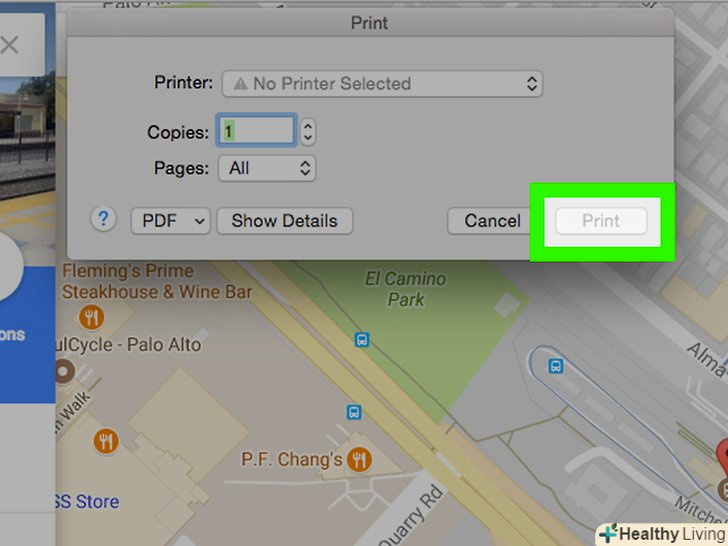 - Якщо Ви користуєтеся старою моделлю принтера, його потрібно під'єднати до комп'ютера. Також карту можна зберегти на комп'ютері у форматі PDF; для цього натисніть «Друк в PDF», "Зберегти як PDF" або аналогічну кнопку.