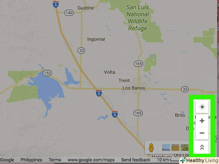 Змініть масштаб карти. Натисніть » + "або » -" в нижньому правому куті карти, щоб збільшити або зменшити масштаб, відповідно. Пам'ятайте, що буде роздрукована тільки та область карти, яка відображається на екрані.- Чим більше ви збільшите карту, тим більше деталей зможете відобразити.