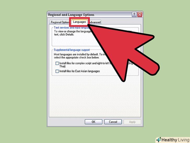 Виберіть "годинник, мова та Регіон".у цій вкладці натисніть на "Мова та регіональні стандарти". Має відкритися спливаюче вікно з вкладками для інших мов.