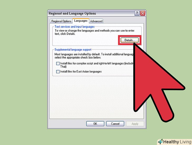 Перейдіть на вкладку "Мови".там повинен бути розділ "мови і служби текстового введення" з можливістю вибору "деталі".