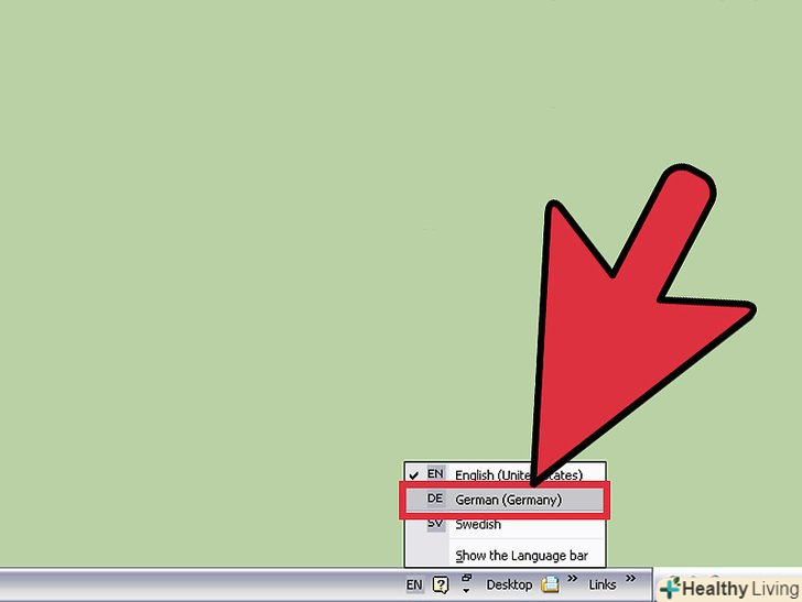 Клацніть символ 'RU' і виберете ту мову, яку ви тільки що встановили. Тепер ви можете набирати текст на цій мові.