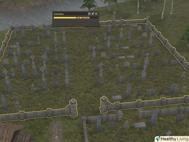 - Для побудови Кладовища потрібно 1 камінь на одиницю площі. Максимальний розмір кладовища становить 20 одиниць в довжину.