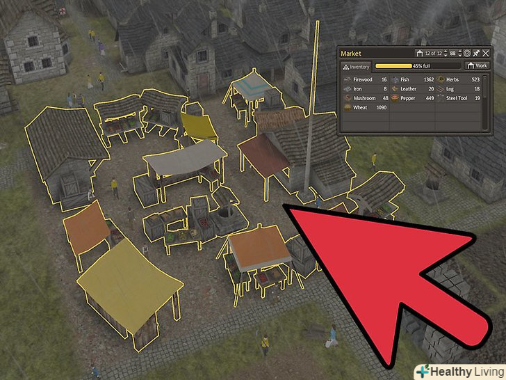 Побудуйте ринок.ринок потрібен ще й для того, щоб залучати кочівників; він служить для розподілу ресурсів між громадянами, де вони можуть дістати такі речі як їжа і хмиз і принести їх додому. Вашим громадянам більше не доведеться далеко їздити, тільки для того щоб дістатися до складської купи або будівлі і дістати необхідні припаси.- Ринок охоплює 90 кварталів; кожен громадянин в межах цього району віддасть перевагу діставати продукти на цьому ринку, а не їздити далеко.