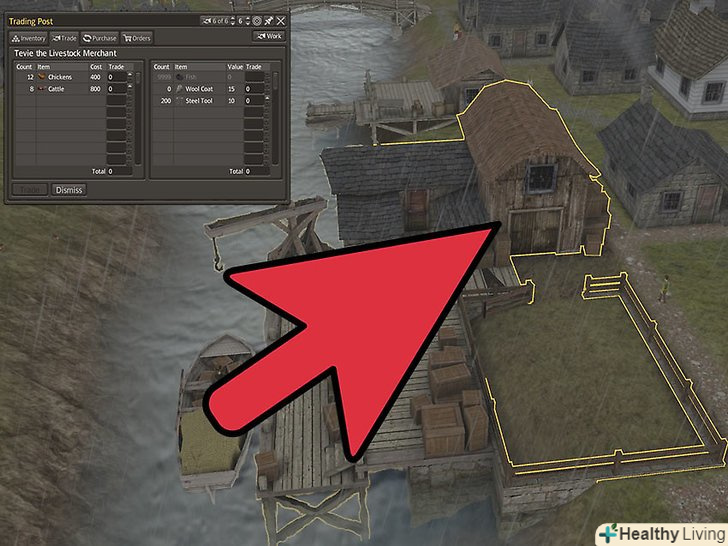 Побудуйте торговельну Точку.торгова Точка-це корисна будівля, де купці ведуть з вами торгівлю; вони будуть пропонувати їжу, ресурси, худобу і нові види насіння. Ніякої валюти в цій грі не існує; при угоді вам доведеться здійснювати обмін ресурсами.- Для побудови торгової Точки потрібно 62 колоди, 80 каменів, 40 залозок і 140 працівників. Потрібно будувати торгову Точку біля великої річки поруч з кордоном карти, щоб купці могли туди дістатися.