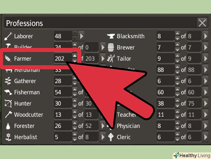 Додайте більше фермерів.оскільки кочівники неосвічені при надходженні в місто, вони будуть послаблювати ваших освічених громадян, знижуючи і сповільнюючи темпи виробництва. Крім того, при надходженні кочівника в місто, запаси їжі будуть зменшуватися через збільшення кількості дорослих жителів.- Щоб уникнути голоду, будуйте більше ферм і призначайте кочівників на роботу в якості фермерів. Прагніть заповнити всі робочі вакансії, щоб прискорити і поліпшити виробництво сільськогосподарських культур.