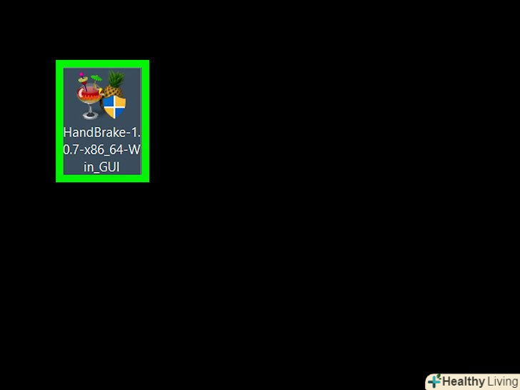 Запустіть програму HandBrake.натисніть на значок у вигляді ананаса і келиха на робочому столі. Якщо цього значка немає, пошукайте його в Spotlight або в меню «Пуск» (в Mac OS X або Windows, відповідно).