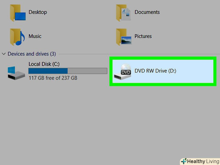 Вставте DVD-диск в оптичний привід комп'ютера.для цього вставте диск в слот на правій панелі ноутбука або на передній панелі комп'ютера. На комп'ютерах з Windows натисніть на кнопку, щоб висунути лоток для диска.- На деяких комп'ютерах Mac оптичних приводів немає. В цьому випадку купите зовнішній DVD-привід; він коштує від 1500 до 6000 рублів.