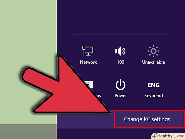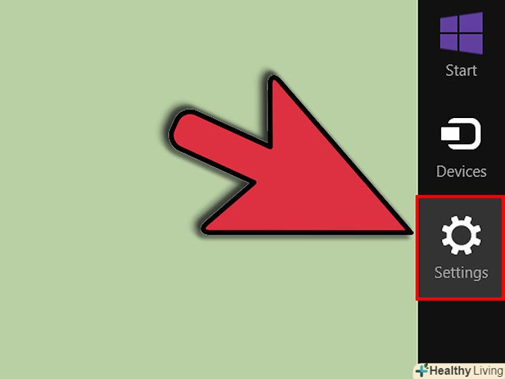 Натисніть на праву сторону екрану пристрою під керуванням Windows 8, а потім натисніть "Налаштування".- При використанні миші Наведіть курсор на правий нижній кут екрану і натисніть "Налаштування".