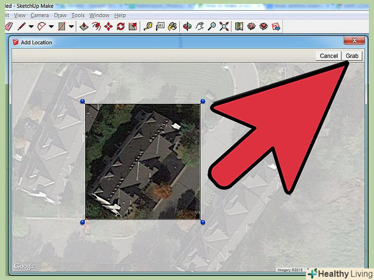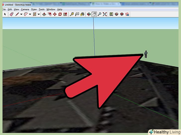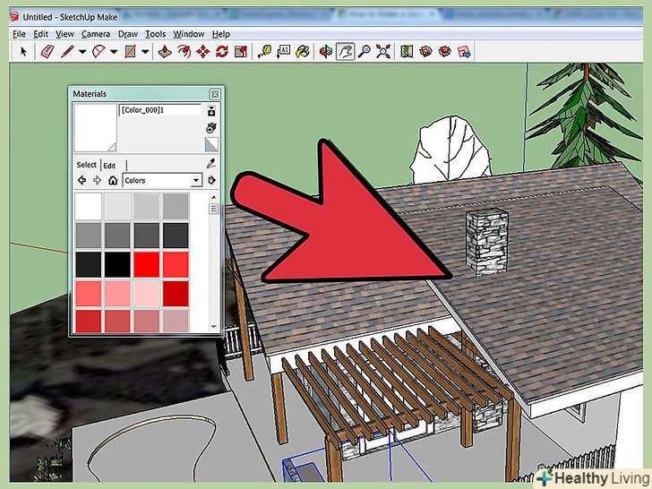 Додайте зображення даху.натисніть на інструмент "матеріали «(позначається як фарба з відром), потім натисніть на інструмент»піпетка". З вибраним інструментом натисніть на супутникові знімки. Нарешті, натисніть на дах Вашої моделі. Дах буде виглядати початком реальної будівлі.