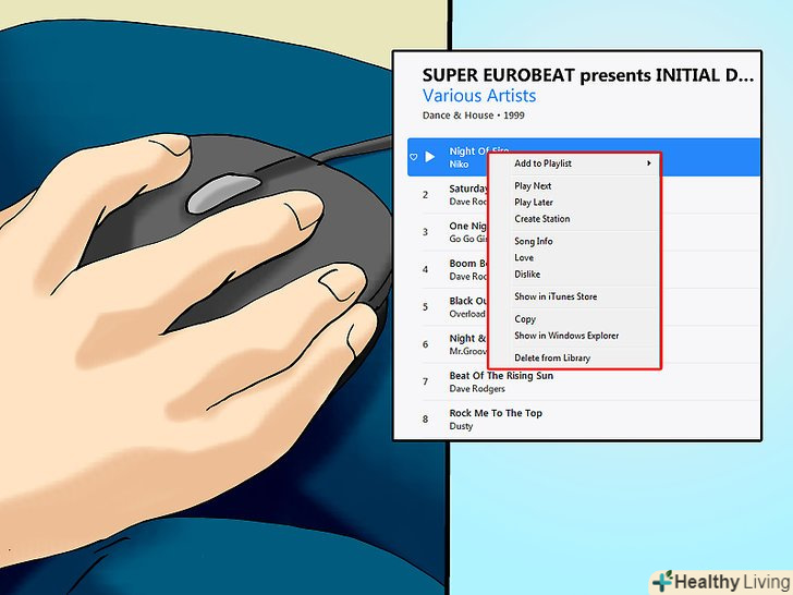 Клацніть правою кнопкою миші по будь-якій композиції в скопійованому альбомі.розкриється меню.- На комп'ютері Mac натисніть на пісню, а потім клацніть по "Файл" у верхньому лівому кутку екрану.