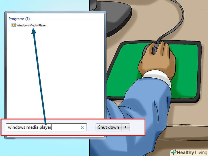 Запустіть Програвач Windows Media. введіть windows media player у меню «Пуск», а потім натисніть «Windows Media Player» у верхній частині меню «Пуск».- Якщо ви не бачите «Windows Media Player» у верхній частині меню «Пуск», цього програвача немає на комп'ютері. У цьому випадкувстановіть і використовуйте iTunes .
