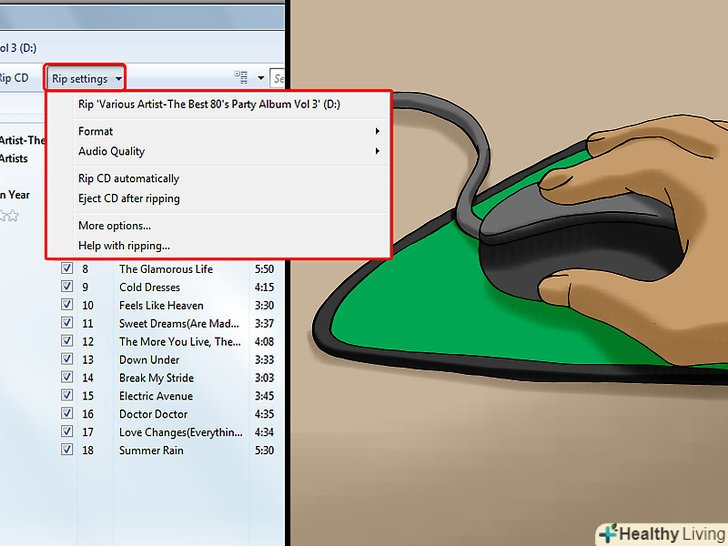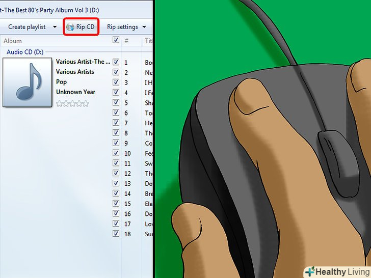 Клацніть поКопіювати CD.ця вкладка знаходиться у верхній частині вікна програвача. Почнеться копіювання пісень з компакт-диска в зазначену папку.