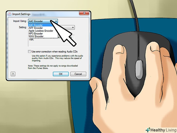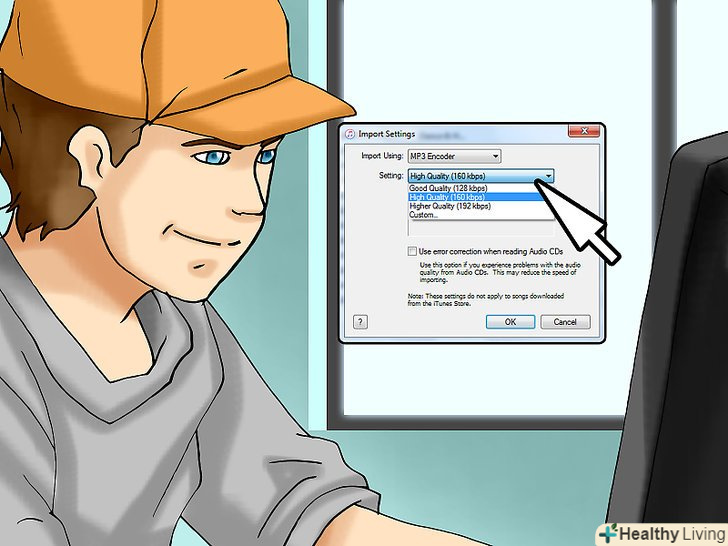 Виберіть якість звуку (якщо необхідно).у меню "Параметри" виберіть якість імпортованих мелодій.- Наприклад, щоб скопіювати пісні в найкращій якості, в меню виберіть опцію "Висока якість".