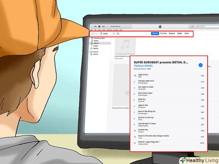 Відкрийте альбом у своїй медіатеці. натисніть «музика " у верхній лівій частині сторінки iTunes, прокрутіть вниз до альбому, скопійованого з компакт-диска, а потім клацніть по альбому, щоб відкрити його.